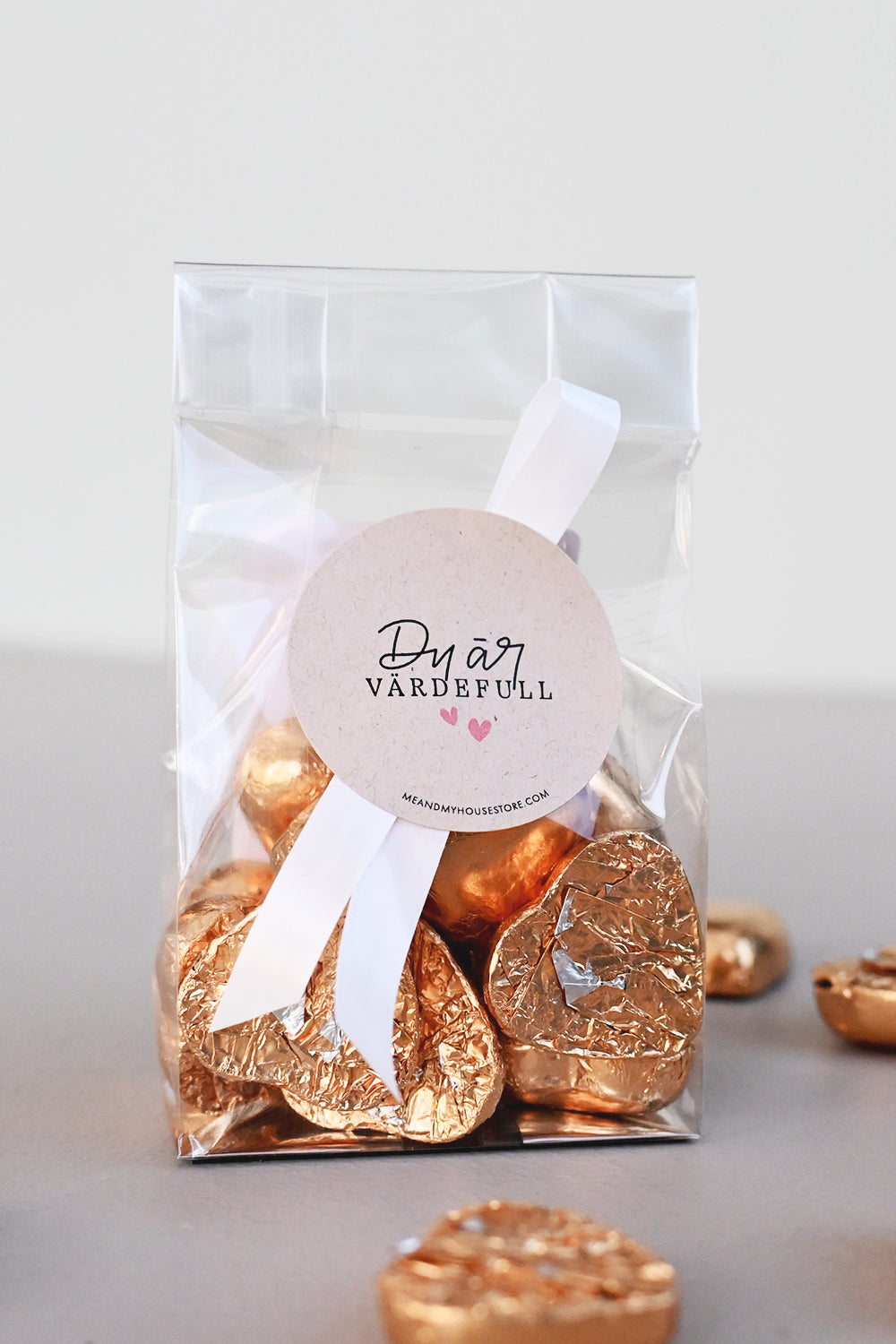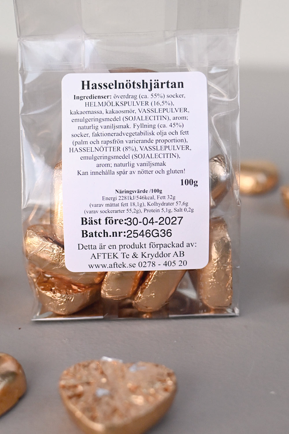 Hasselnötshjärtan med guldfolie: Du är värdefull