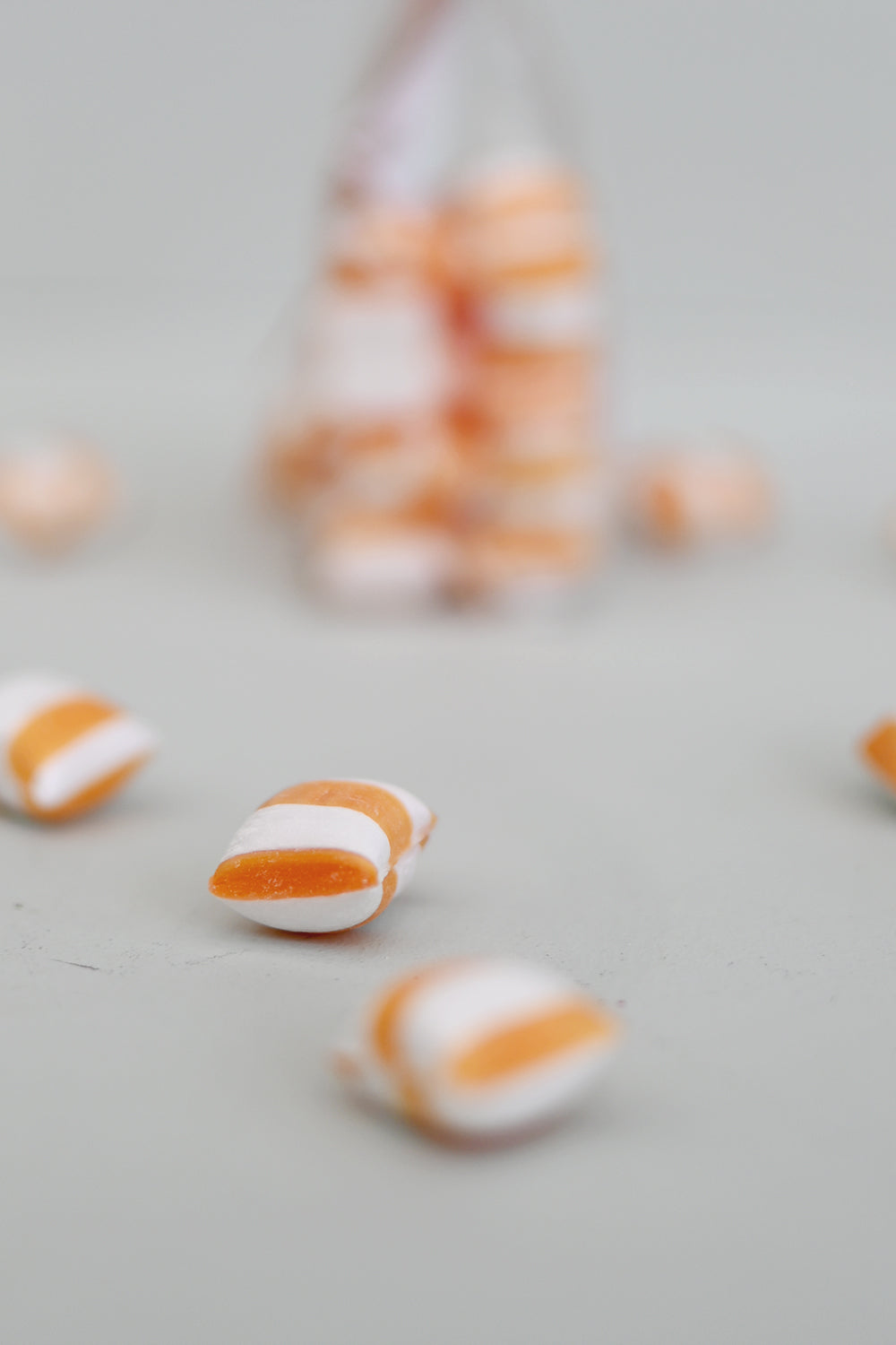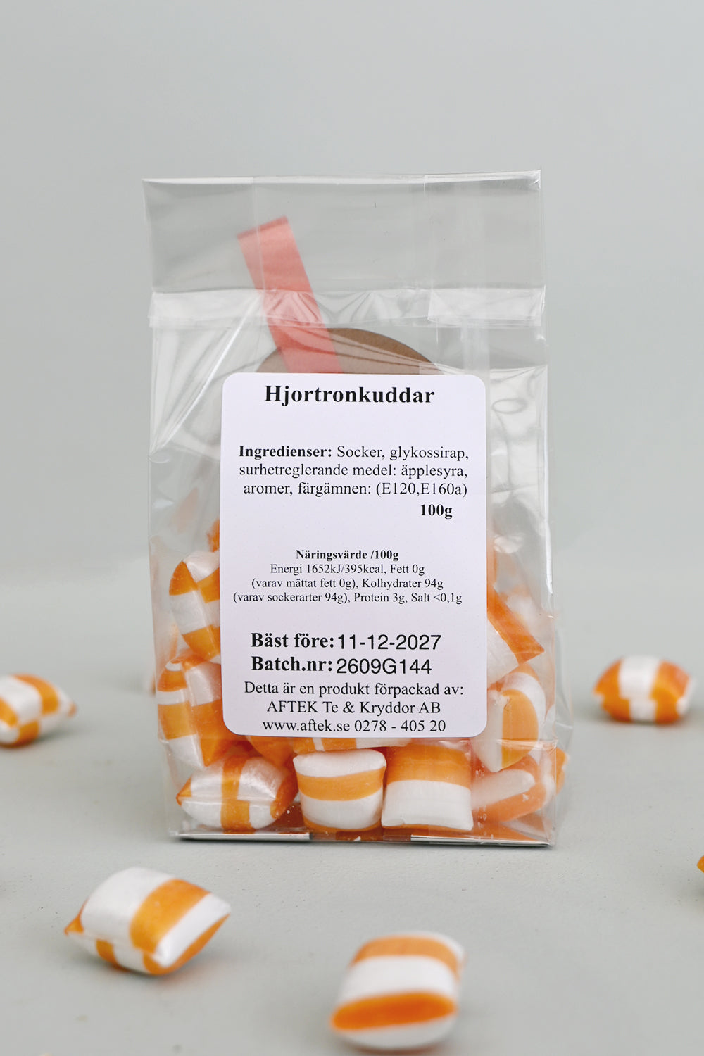 Söt påse med klassiska polkagrisar, men med smak av hjortron.