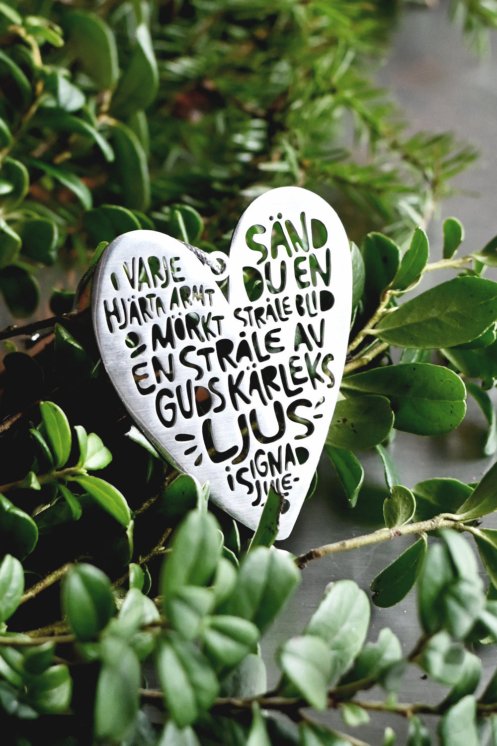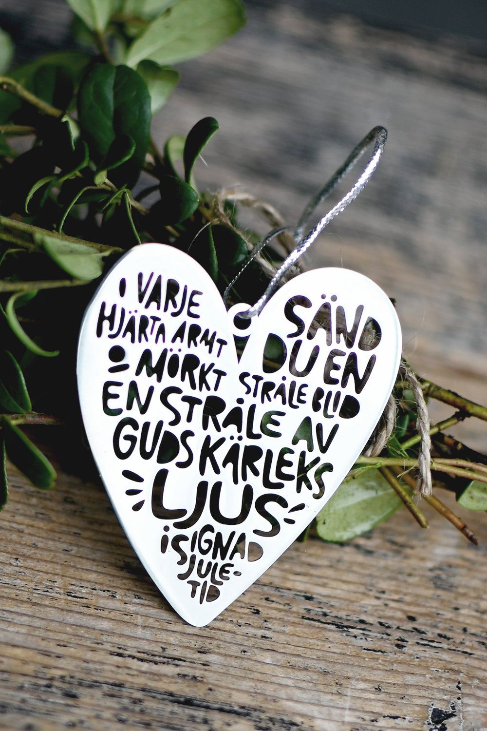 Julhänge i rostfritt stål: I varje hjärta armt och mörkt
