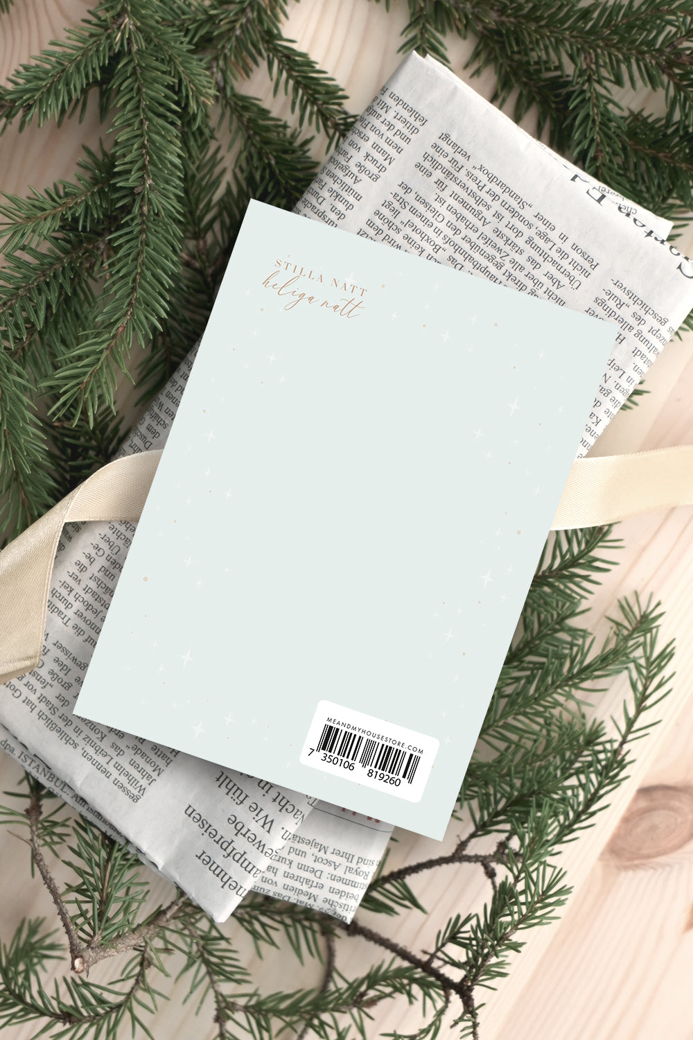 Kortet är tryckt på matt, återvunnet papper och baksidan har gott om plats för din fina hälsning.