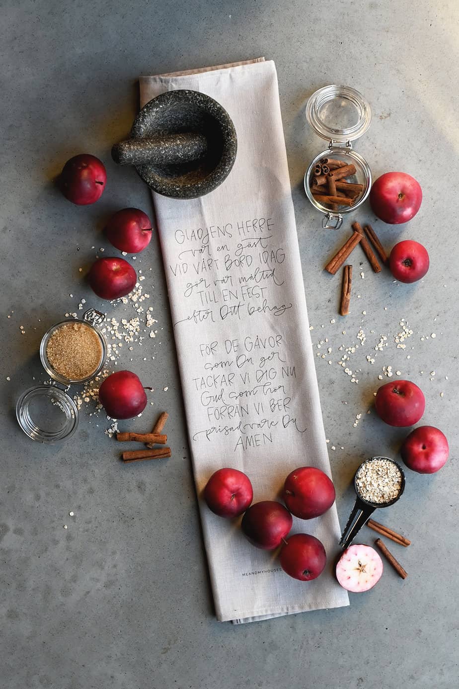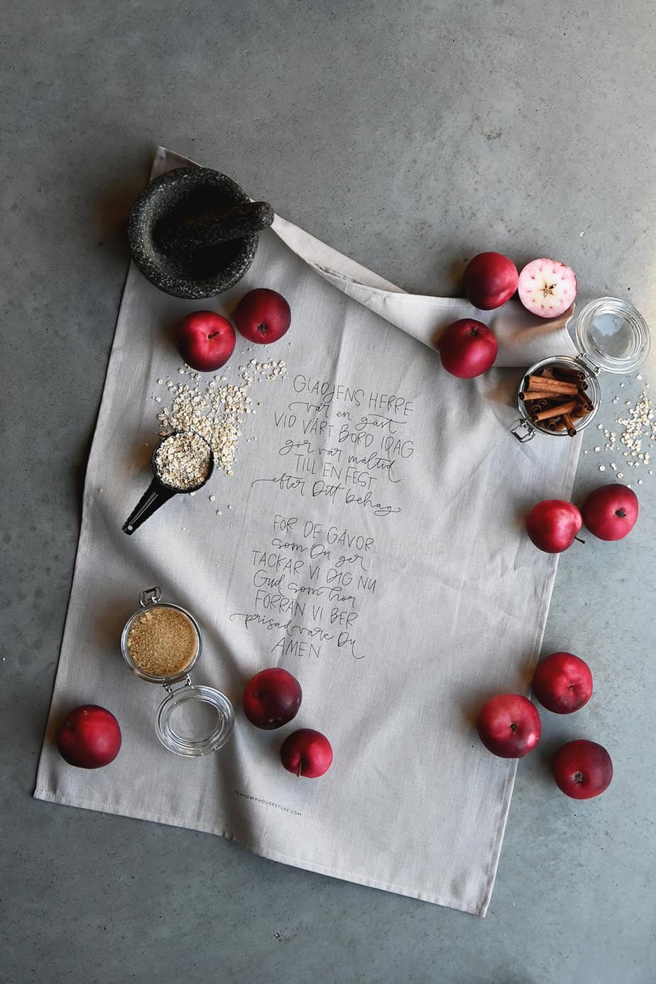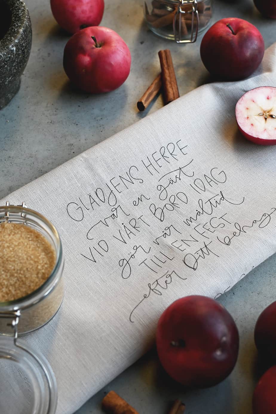 Kökshandduken är 50x70 cm stor, sydd i Lettland och tryckt i Sverige. Tvättas i 40 grader. Stryk från baksidan.