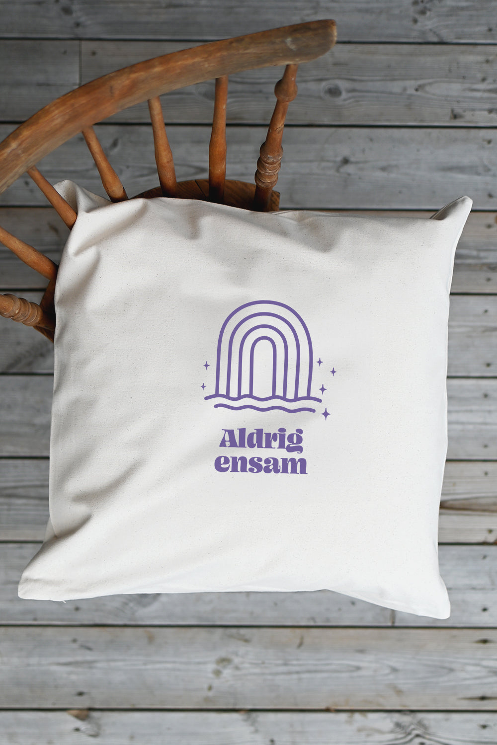 Schysst tillverkat kuddfodral av 100 % bomull. Kuddfodralet har skön, oblekt naturlig känsla, är sytt av kraftig canvas och har ett tryck i blålila färg mitt fram. Trycket är fritt från PVC, tungmetaller och mjukgörare. Dold dragkedja undertill.