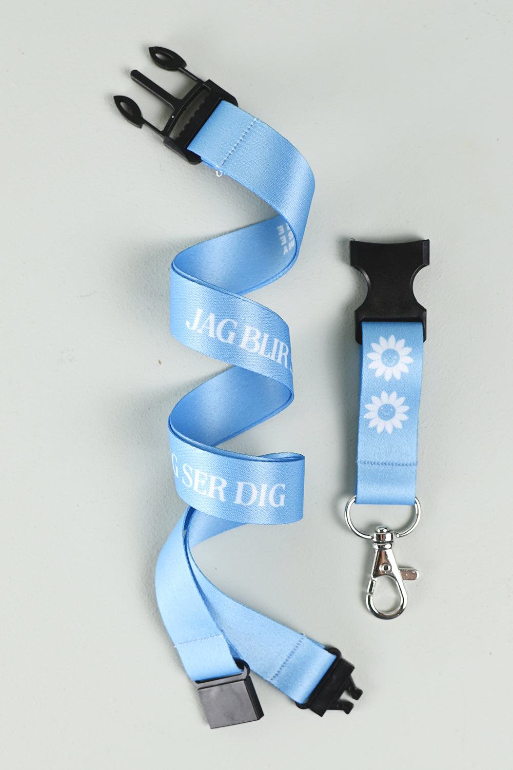Bandet har både säkerhetsclip, snabbfäste och karbinhake där du lätt hänger fast nycklar eller passerkort. Insidan är i matchande färg och har en liten Me & My House Store-logo.