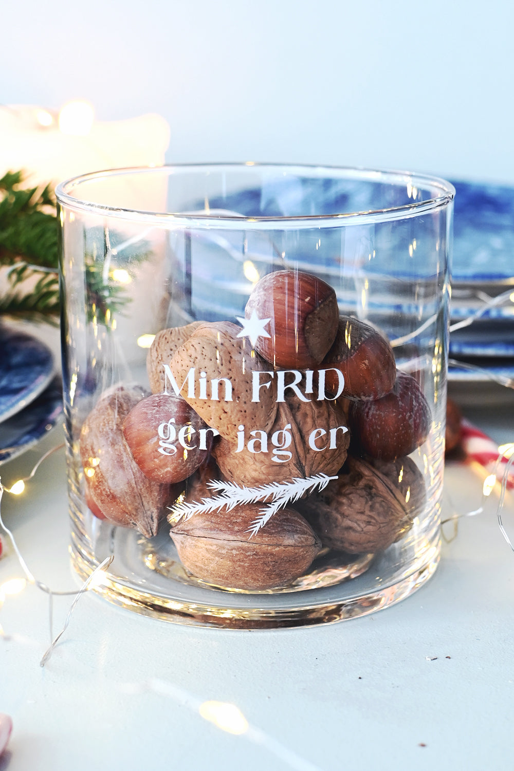 Lyktan är 10 x 10 cm stor. Kan också användas som en vacker blomvas eller fyllas med nötter eller godis, förstås.