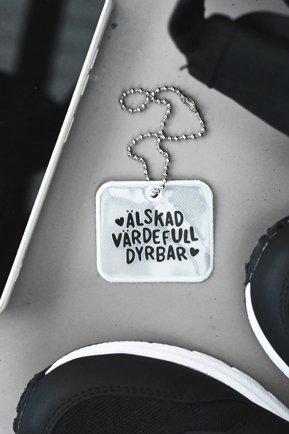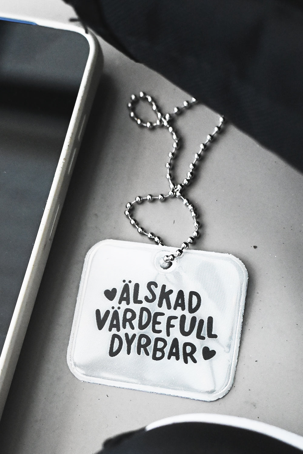 Snygg reflex med kulkedja som du lätt fäster på jackan, väskan, barnvagnen eller cykeln.