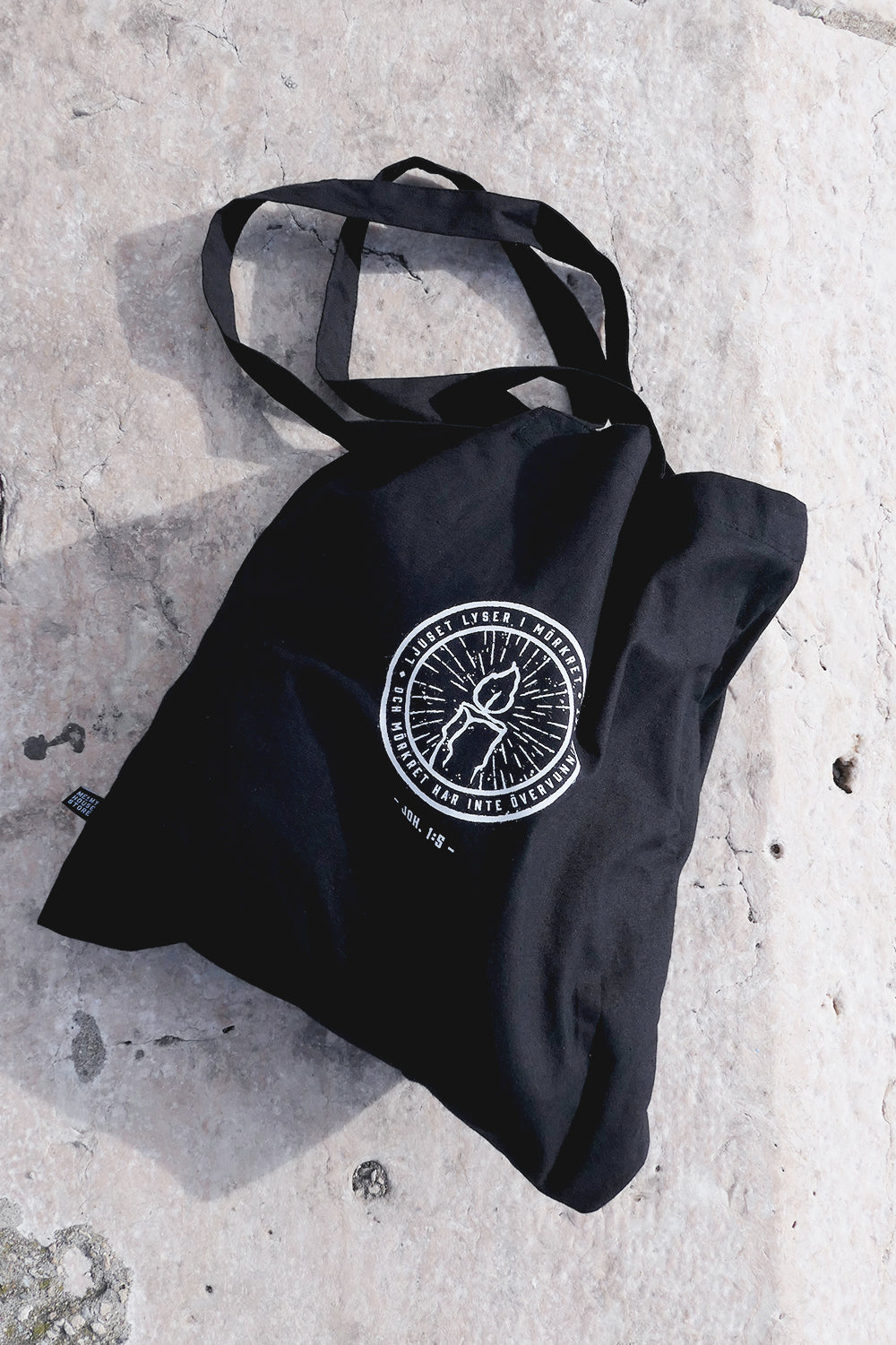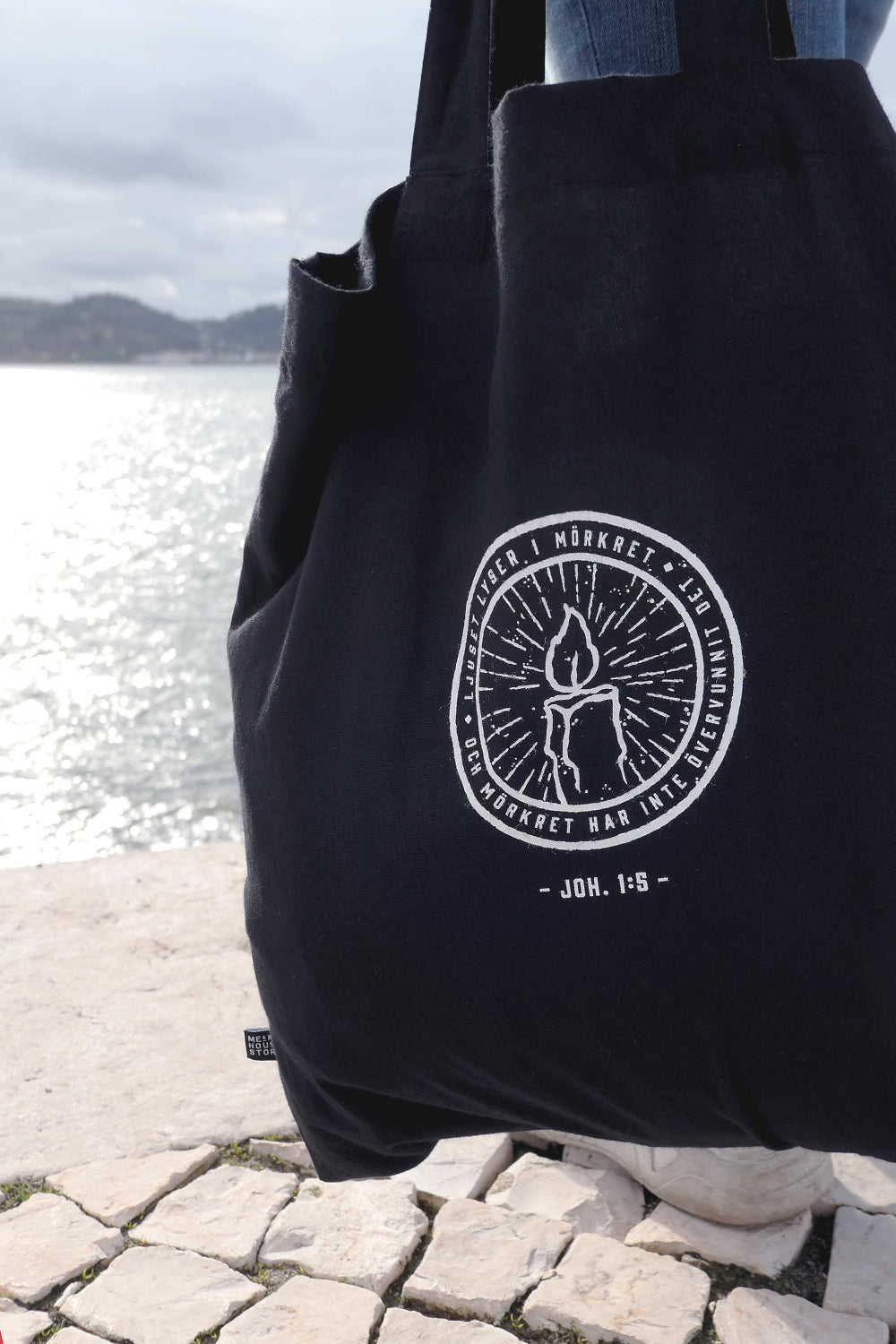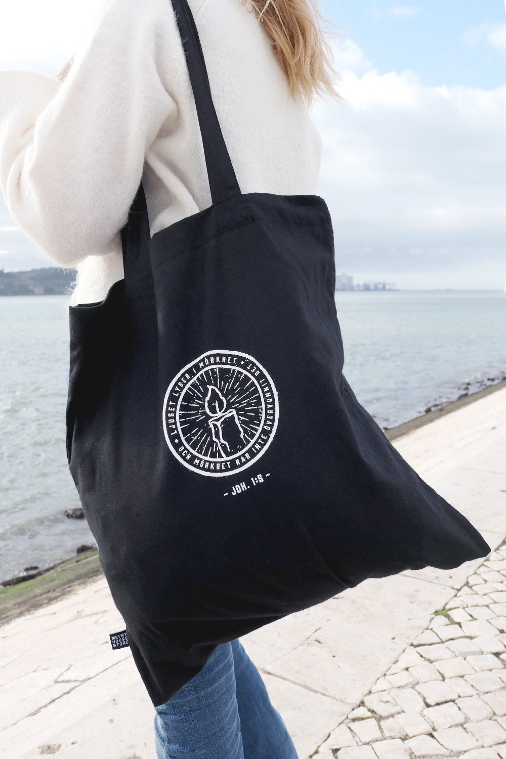 Tygkassen är sydd genom ett hjälpprojekt i Kolkata, Indien, som hjälper kvinnor med bakgrund i trafficking eller extrem fattigdom till nytt liv, stygn för stygn. Vi har själva besökt projektet och träffat flera av kvinnorna som arbetar här, så det känns extra roligt att få sälja dessa tygkassar som vi faktiskt vet gör skillnad.