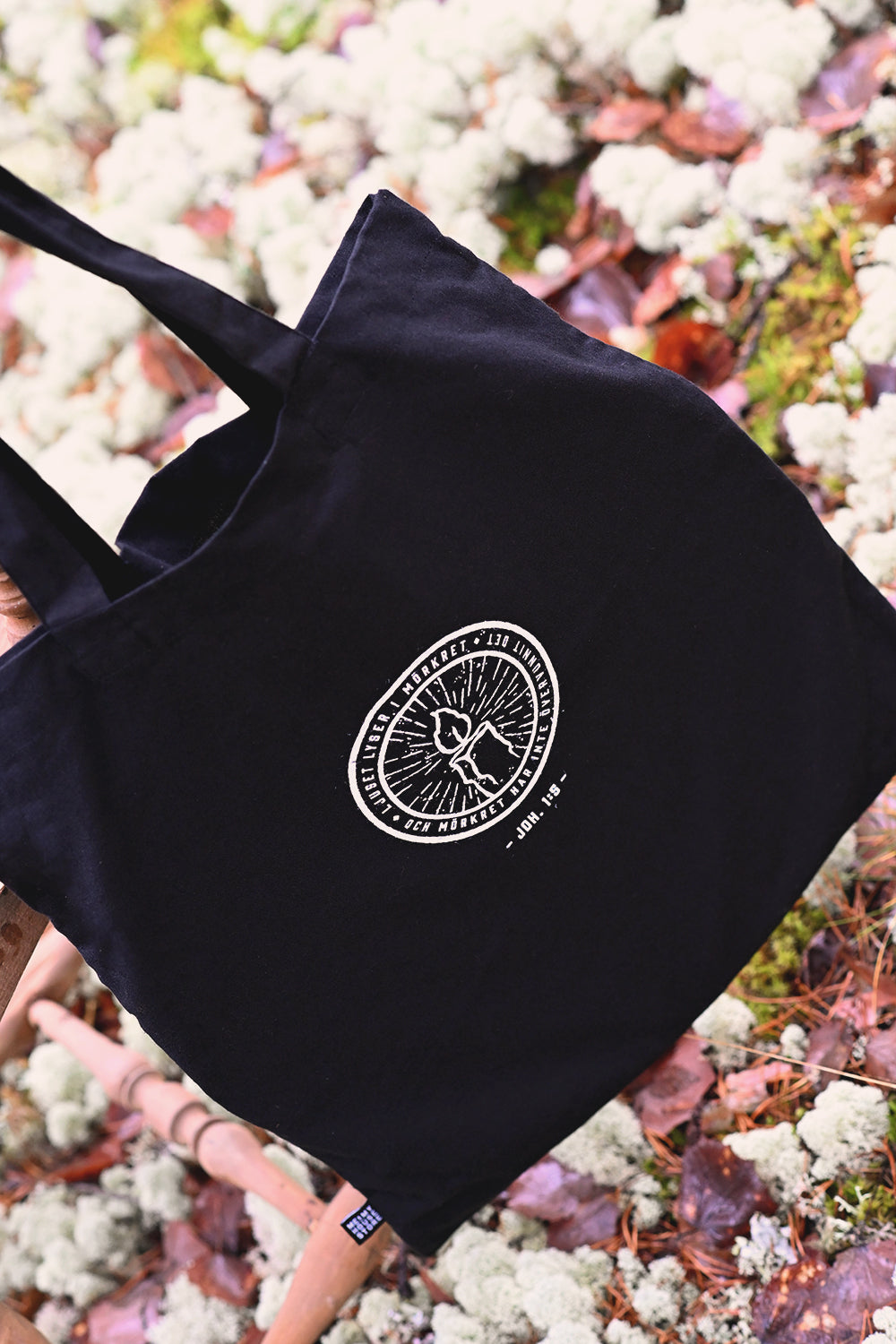 - Tygkassen är sydd i ekologisk, oblekt bomull och tryckt med miljövänlig färg.